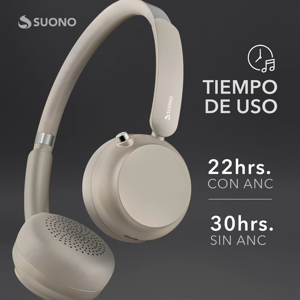 Disfrutá de una experiencia auditiva superior con los auriculares inalámbricos Suono con cancelación activa de ruido (ANC). Ideales para viajes, oficina o casa, ofrecen comodidad, sonido envolvente y larga duración de batería para acompañarte durante todo el día.