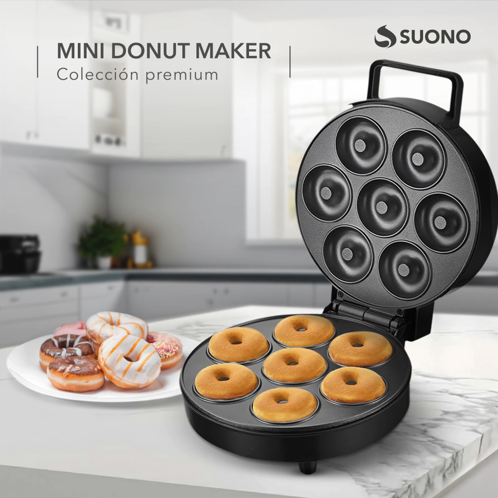Perfecta para los amantes de la repostería, la Máquina para Hacer Donas Suono te permite preparar donas caseras dulces o saladas de manera rápida, sencilla y segura. Con su diseño compacto y superficie antiadherente, es ideal para cualquier cocina y para sorprender en reuniones familiares, cumpleaños o meriendas especiales.