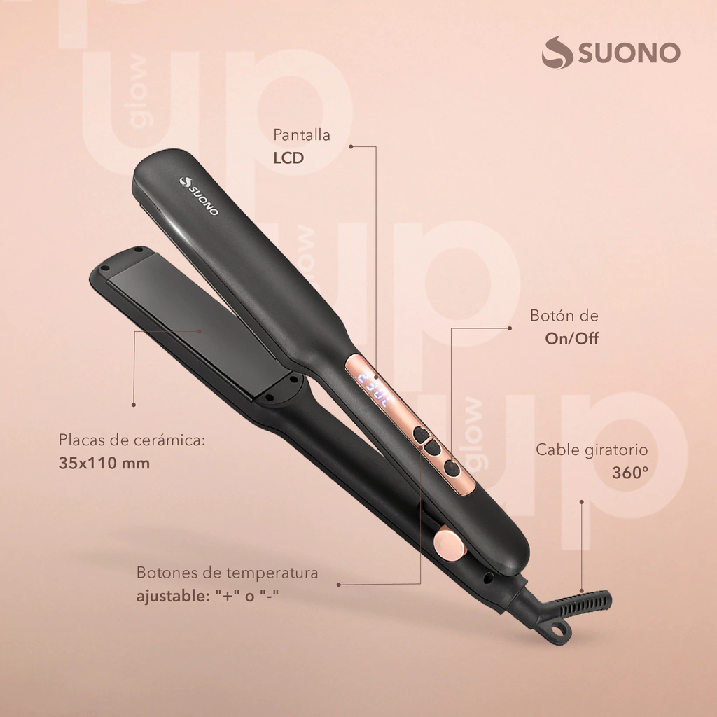 La Planchita para el Cabello con Ajuste de Temperatura ofrece un alisado profesional, suave y sin frizz, gracias a su tecnología de placas cerámicas y control de temperatura ajustable. Su pantalla LCD permite una selección precisa del calor, adaptándose a diferentes tipos de cabello para garantizar un resultado perfecto sin dañarlo.