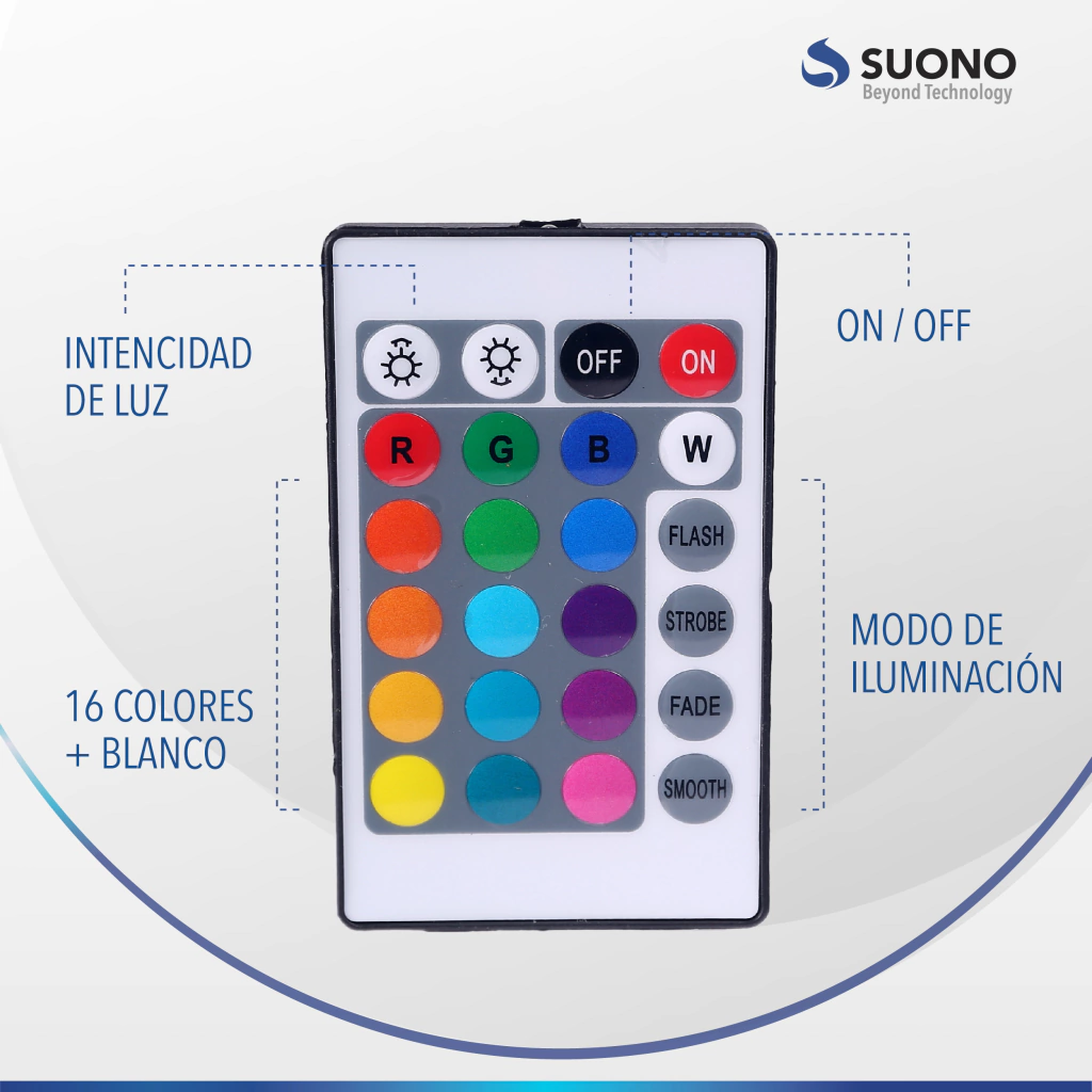 Tecnología RGB con 16 colores: Personalizá el ambiente con diferentes tonalidades.